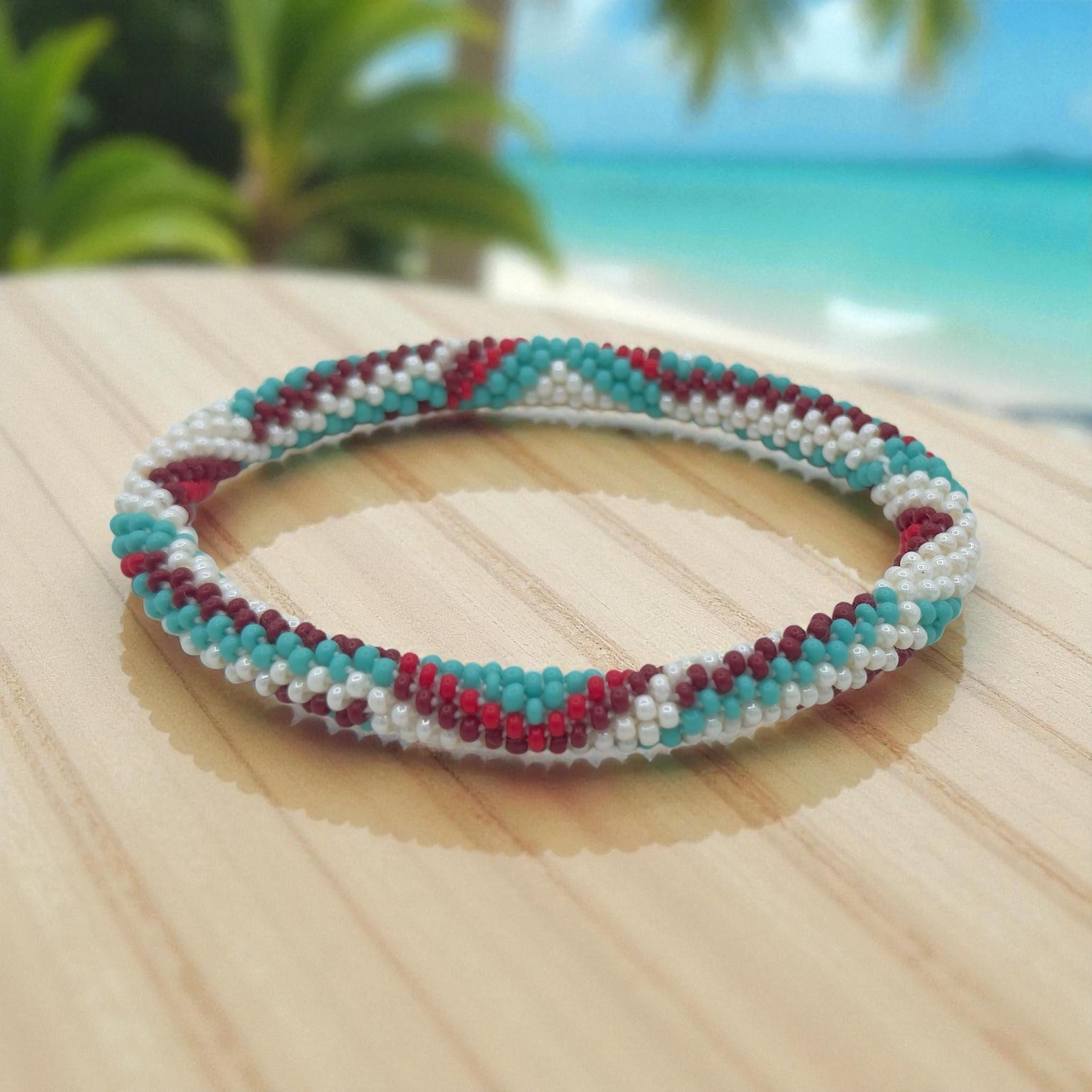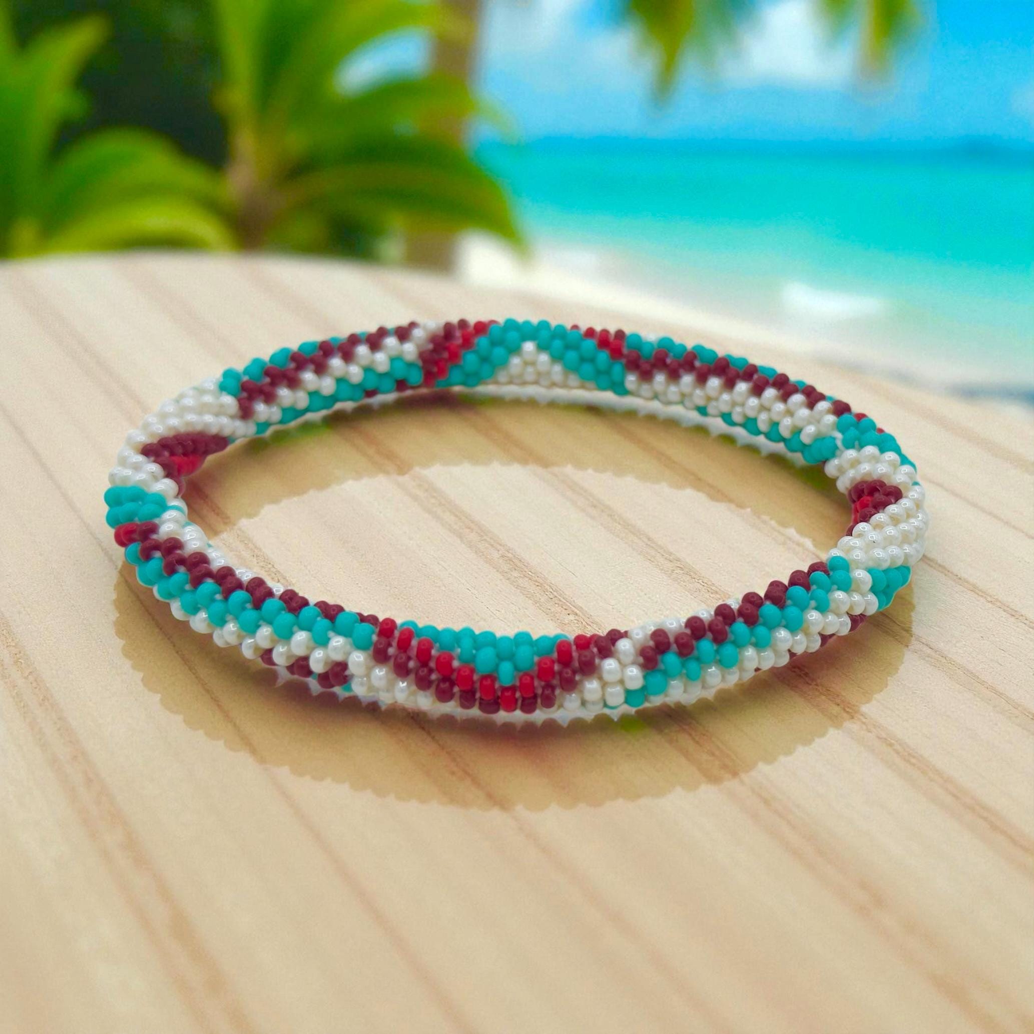 Seed Bead Bracelet | Handmade Nepal Crochet | Glass Beaded Jewelry - CRIMSON TIDE