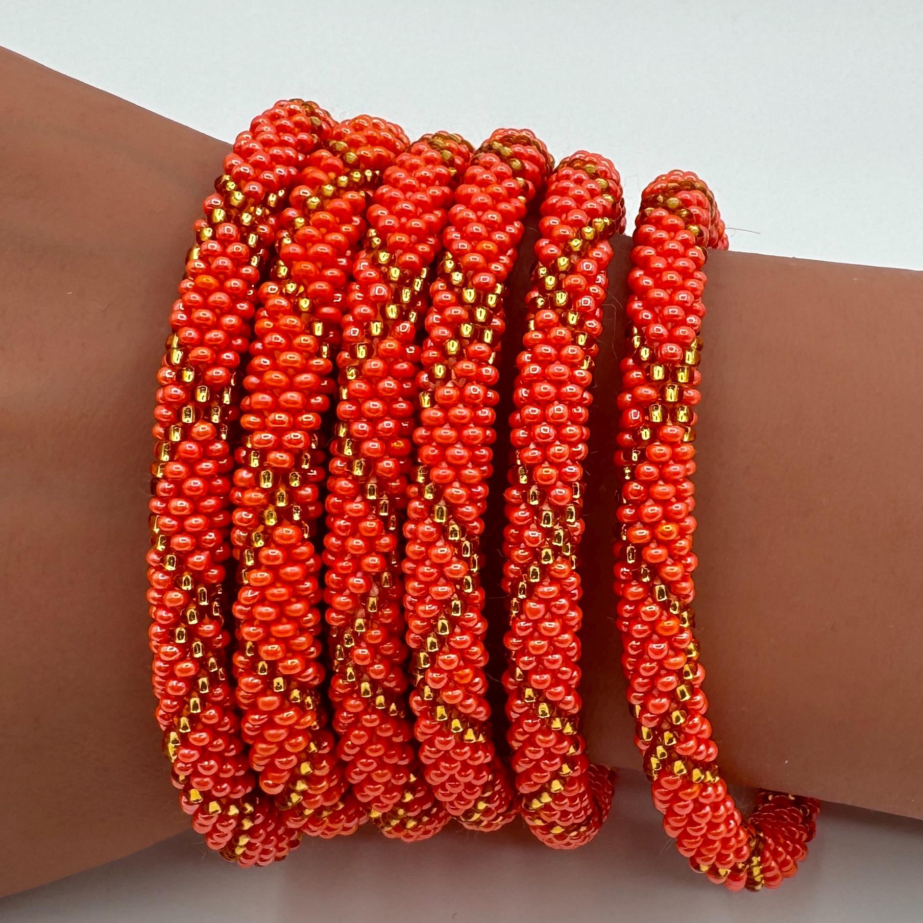 SPICED EMBER | Handmade Glass Seed Beaded Bracelet| Roll On Bracelet| Nepal Bead Bracelets| Colorfulque Creations