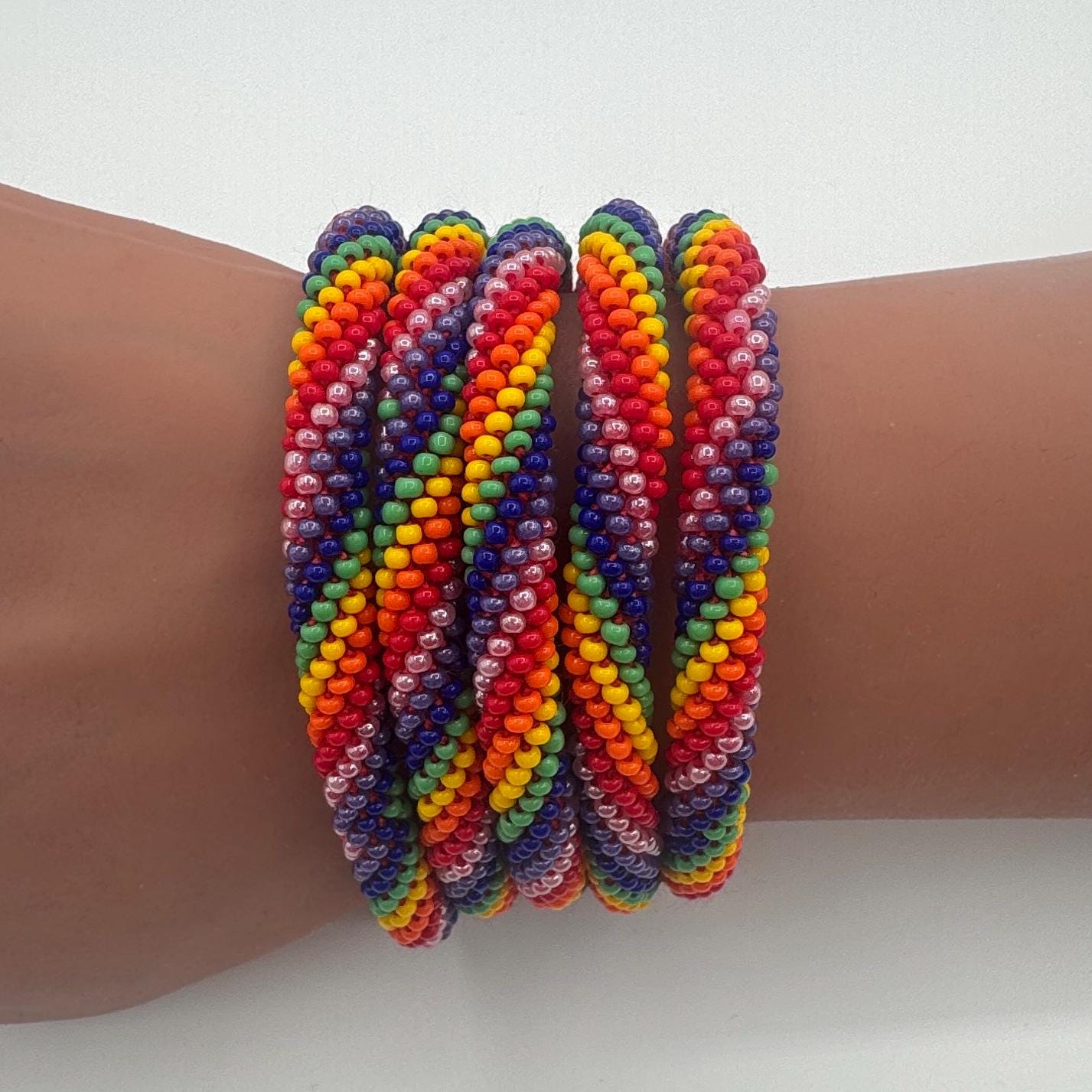 Rainbow Seed Bead Nepal Bracelet: Handmade Glass Artisan Jewelry