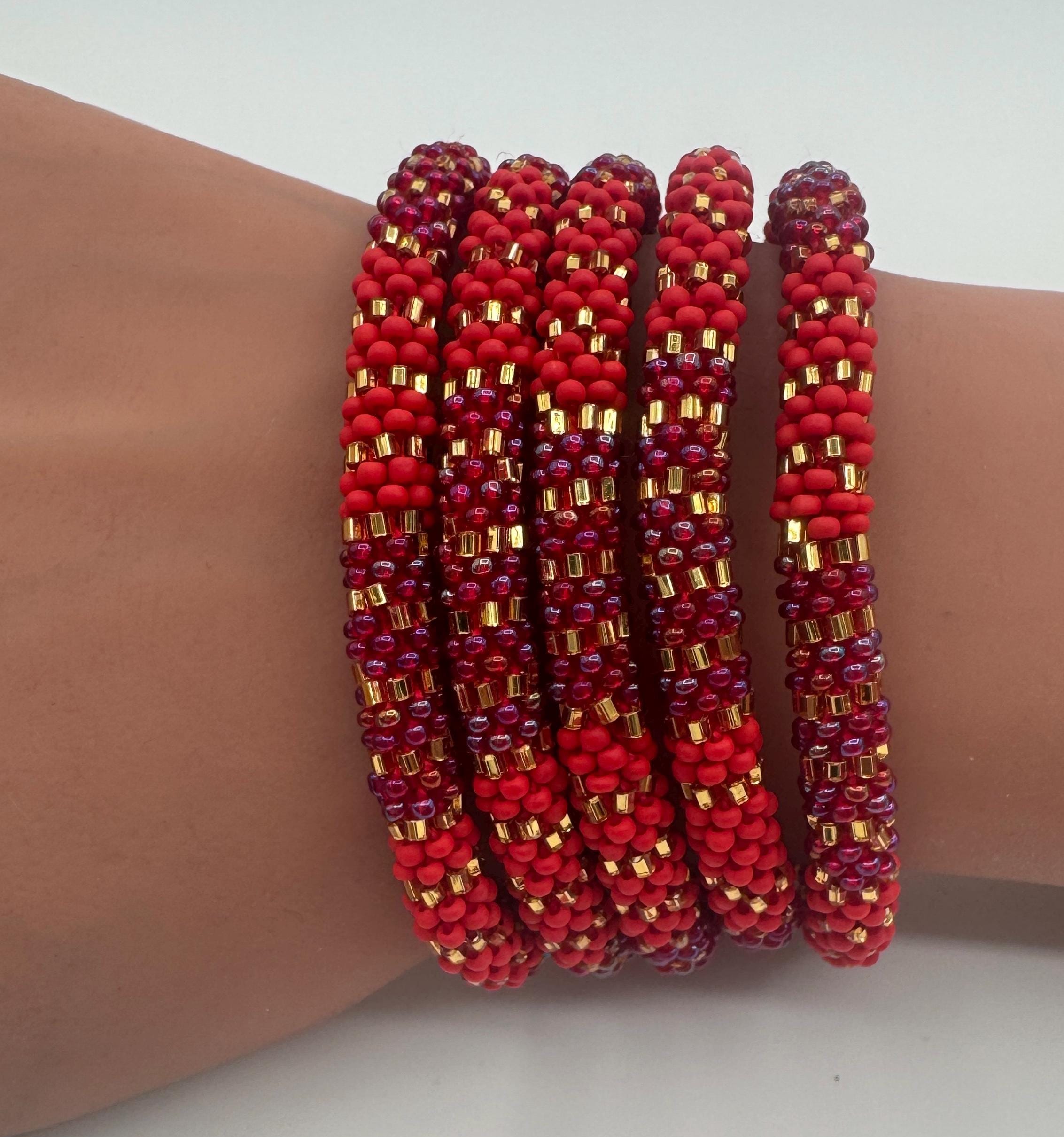 SUNSET SPARK | Handmade Glass Seed Bead Bracelet| Roll On Bracelet| Nepal Bead Bracelets| Colorfulque Creations