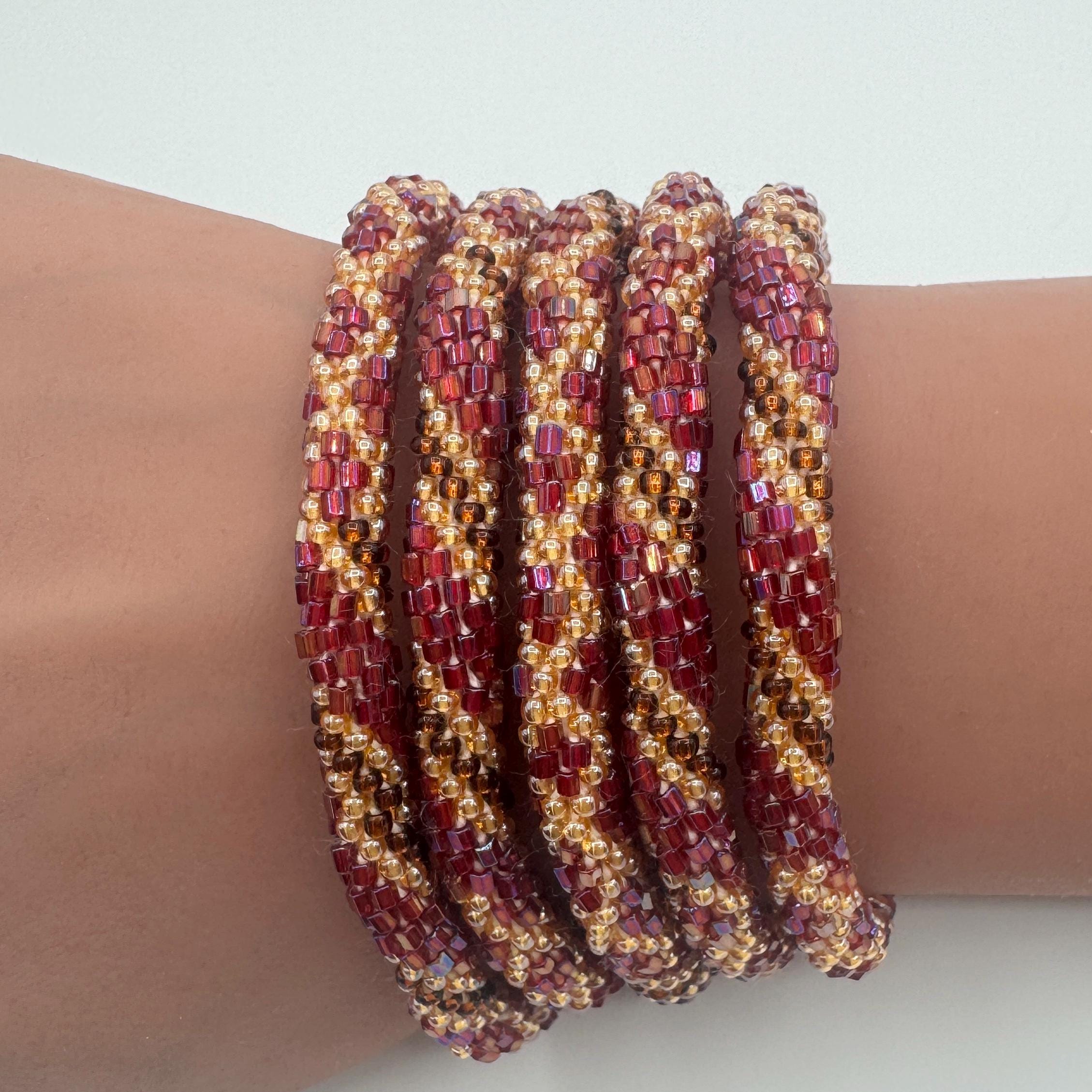CRIMSON EMBER | Handmade Glass Seed Beaded Bracelet| Roll On Bracelet| Nepal Bead Bracelets| Colorfulque Creations
