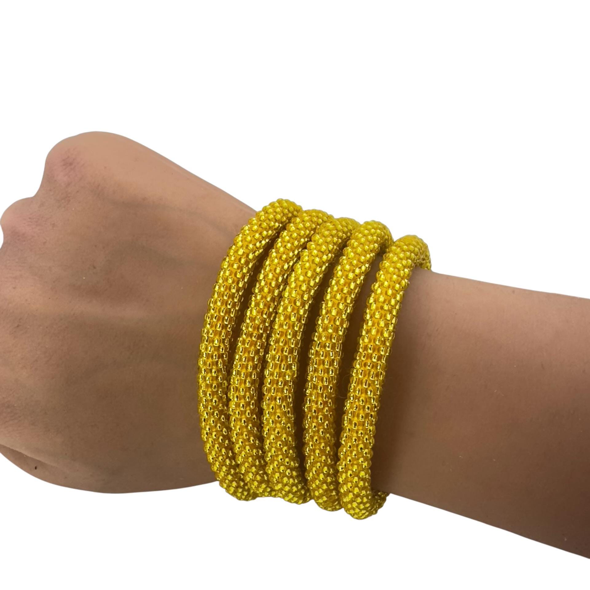 LEMON TWIST | Handmade Glass Seed Beaded Bracelet| Roll On Bracelet| Nepal Bead Bracelets| Colorfulque Creations