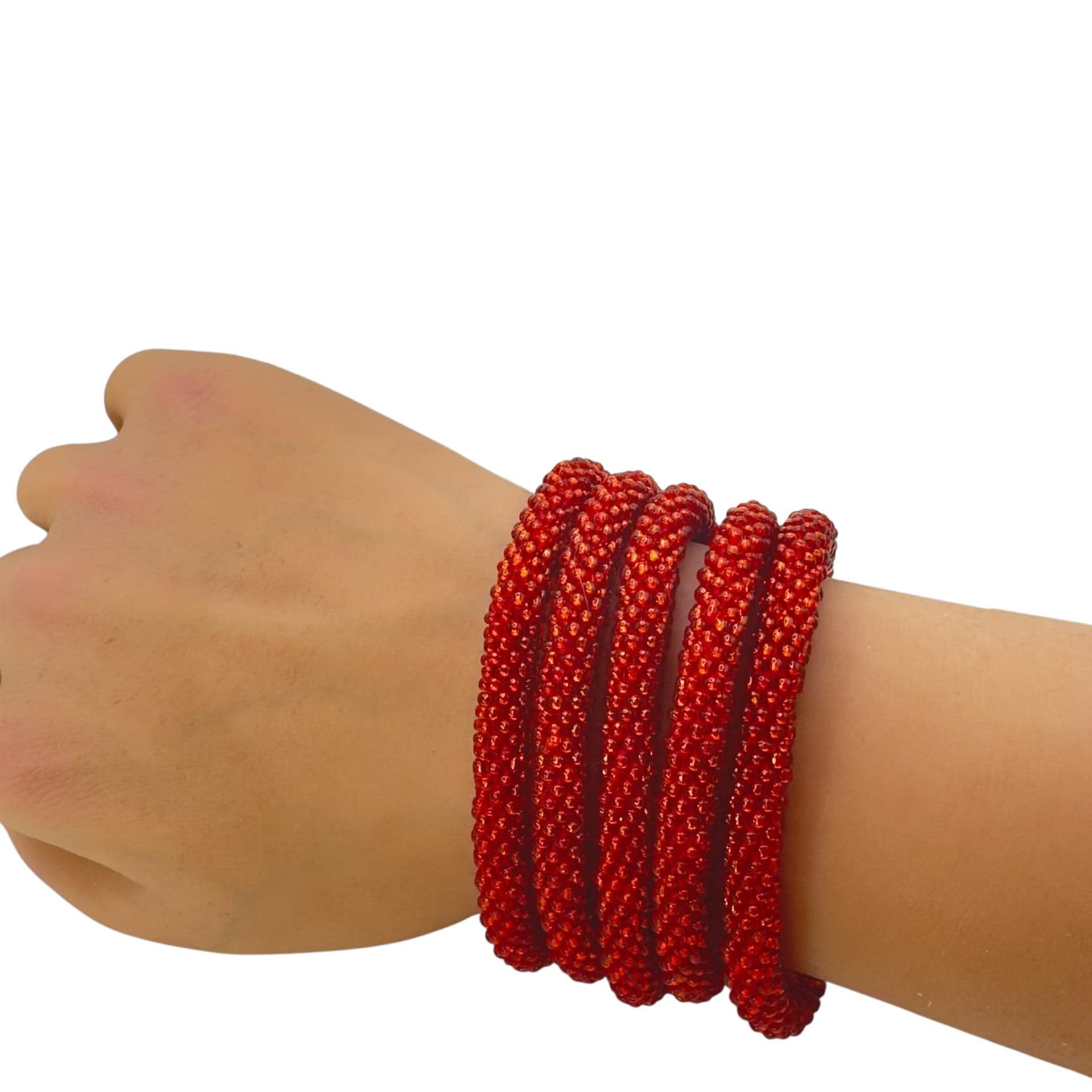 CRIMSON HEAT | Handmade Glass Seed Beaded Nepal Bracelet| 1 Bracelet | Colorfulque Creations | Nepal Seed Bead Bracelets
