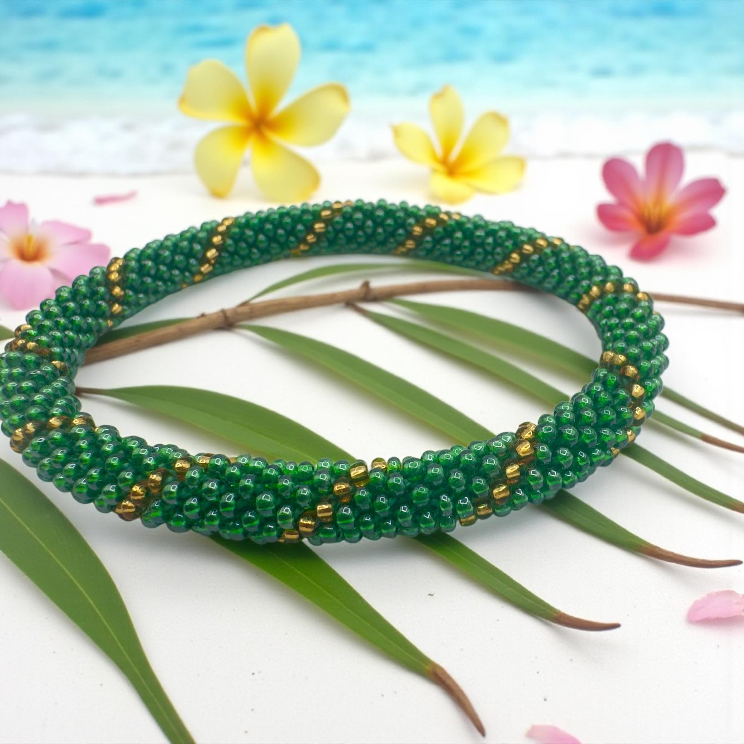 Seed Bead Bracelet | Handmade Nepal Crochet | Glass Beaded Jewelry - EMERALD JEWEL