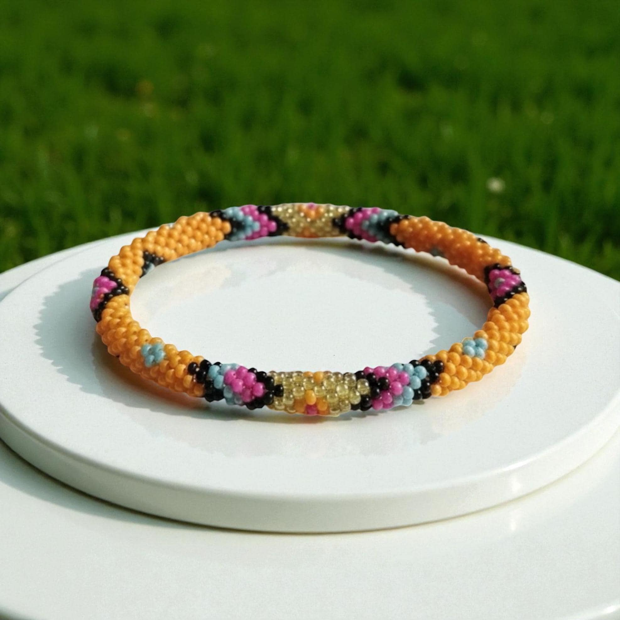 Seed Bead Bracelet | Handmade Nepal Crochet | Glass Beaded Jewelry – BOHO SUNSET
